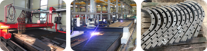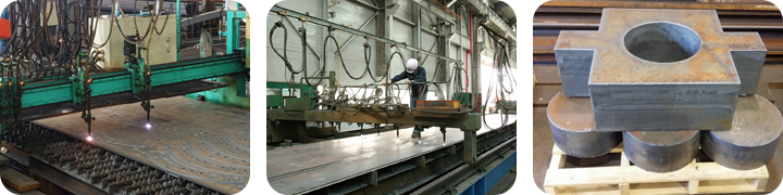 - 극 후판(50T)과 같은 두꺼운 철판 절단 시 사용하며 다양한 형태로 가공 가능.