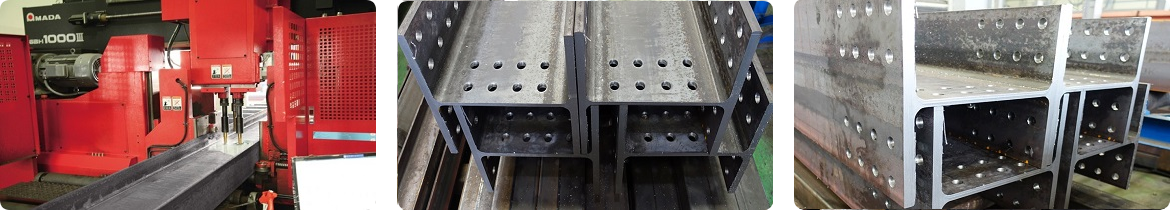(주)현승 가. 절단 특징 - H형강, 각파이프 다발 절단, 파이프(500A) 등 모든 형강류 절단이 가능- 각도 절단이 가능하며, 두께 제약 없이 모든 절단이 가능 나. 벤딩 특징 - 수요자의 필요에 맞게 ㄱ자, U자, ㄷ자등 다양한 형태로 형강류를 구부리는 작업 다. 홀가공 특징 - 다축 드릴링 머신을 통하여 동시에 여러개의 홀을 가공 가능